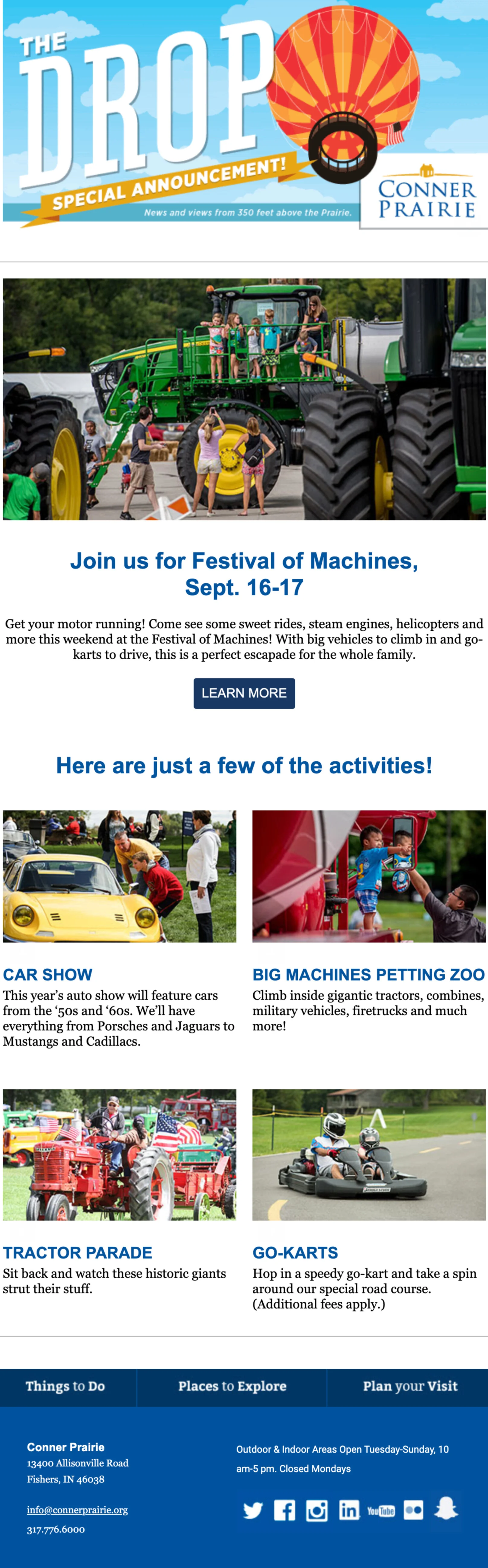 Content Strategy and Marketing for Conner Prairie’s Festival of Machines event
